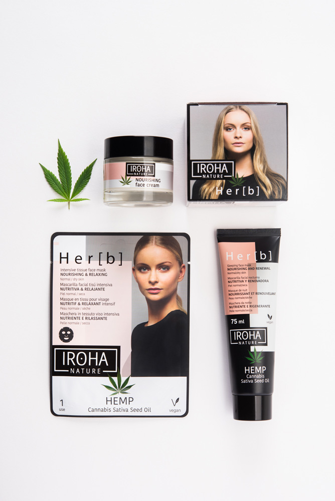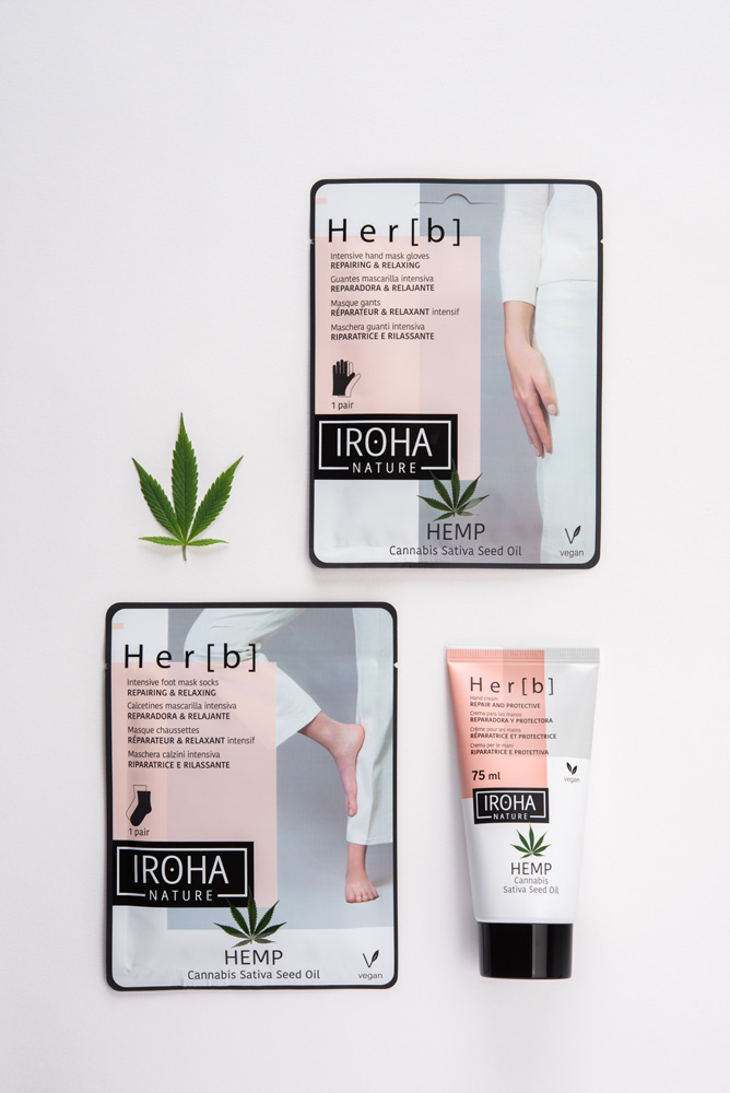 Libre de parabenos, con ingredientes naturales y vegana, la línea HERB tiene como ingrediente principal de los productos de cuidado facial y corporal, el aceite de semilla de cannabis, para lucir un rostro hidratado, gracias a sus mascarillas y cremas faciales, además de unas manos y pies cuidados.