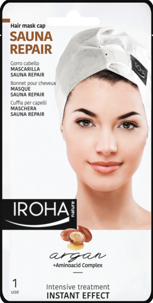 Este gorro mascarilla de Iroha Nature se compone de ingredientes naturales, libres de parabenos como el Aceite de Argán, que cuenta con propiedades hidratantes y reparadoras que ayudan a mejorar la elasticidad e hidratación del cabello, un complejo de aminoácidos con propiedades altamente hidratantes que, ayudan a fortalecer la estructura, protegen el color y ayudan a reparar los daños del cabello, y complejo de vegetales,  que genera un efecto calor extra, a la para que ayuda a aumenta la temperatura y a activar el riego sanguíneo.  Su uso es sencillísimo, tras tu rutina habitual de pelo, aplicar el gorro unos 15-20 minutos, aclarar con abundante agua y listo para lucir melena.