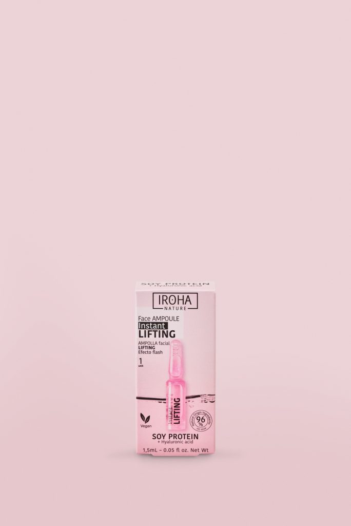 El ritmo de vida actual no nos permite ni un segundo para dedicarnos, conscientes de ello, Iroha Nature te propone su ampolla Lifting con la que eliminaras signos de fatiga y mejorarás el aspecto de las líneas de expresión en cuestión de segundos, perfecta para aplicar unos minutos antes de tu cita. Cabe destacar que la Ampolla Lifting Facial Instantáneo ha sido destacada por el jurado de The Beauty Awards 2020, de ASOS, como Producto Recomendado en la categoría “Nuevo Tratamiento para la Piel 2020”. Entre sus activos principales se encuentra la proteína de soja, que además de aportar hidratación, regenera y detoxifica la piel y estimula la renovación celular y ofrece protección ante los agentes externos. También contiene una combinación de agentes biotensores que se encargan de proporcionar un efecto lifting inmediato e invisible.