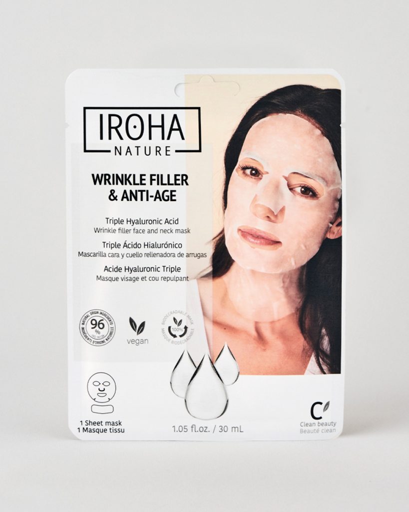 La mascarilla facial tisú Rellenadora y Antiedad cumple también con el compromiso de respetar el medioambiente, siendo un producto 100% biodegradable y apto para veganos, con un 96% de ingredientes naturales.