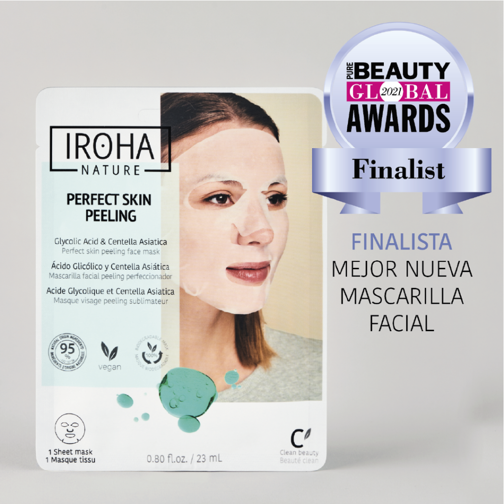 Finalista también de los Pure Beauty Global Awards 2021 como Mejor Nueva Mascarilla Facial su función es exfoliante y peeling. Perfecta para todo tipo de pieles, más aún para aquellas que tienden a ser más apagadas o grasas con impurezas, la mascarilla Peeling piel perfecta contiene Ácido Glicólico y Centella Asiática como principales activos. Entre sus beneficios encontramos la renovación celular y la eliminación de células muertas, gracias al ácido glicólico. En segundo lugar, la centella asiática mejora la hidratación y calma las pieles irritadas. Además, gracias a su poder antiinflamatorio y antibacteriano, podremos prevenir y eliminar las cicatrices de acné. Por su parte, el ácido hialurónico vuelve a hacer acto de presencia hidratando la piel y reteniendo la humedad en la superficie cutánea.