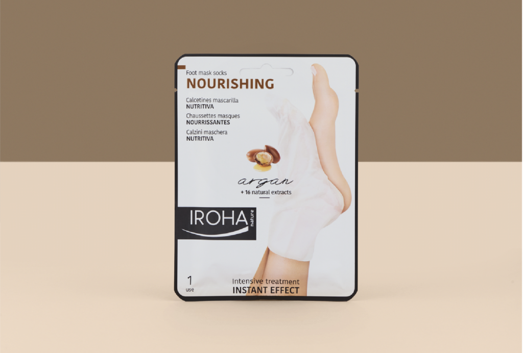 Los calcetines mascarilla nutritivos cuidan e hidratan la piel con argán y macadamia. Están compuestos por una fórmula profesional para nutrir y reparar. El argán ayuda a regenerar la piel y tiene un efecto antioxidante, la macadamia suaviza y calma la piel. Esta mascarilla para pies es ideal para pies secos y con durezas.