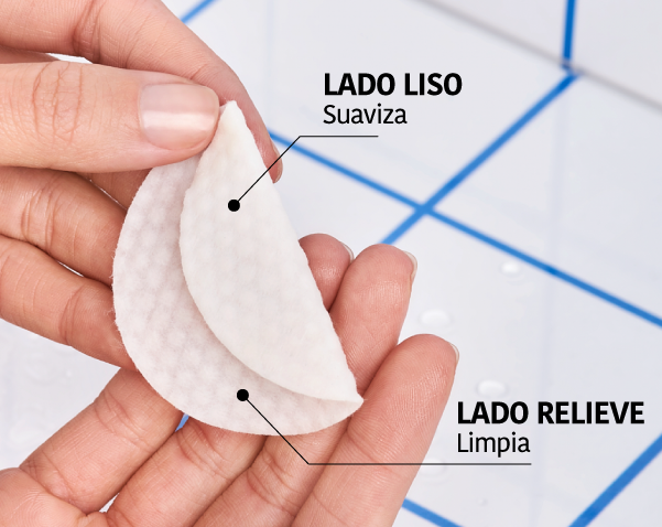 - Deslizar el disco sobre la piel limpia usando la parte con relieve para eliminar impurezas.