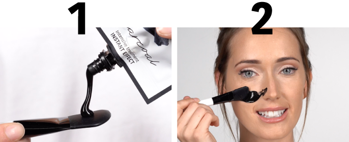 1. Aplicar de manera uniforme sobre la piel limpia evitando el contorno de los ojos y cejas.