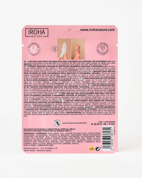 *Estudio de Eficacia realizado en 10 usuarias con una aplicación del guante antiedad IROHA NATURE de 15 minutos. Test de Eficacia realizado por Methodex.