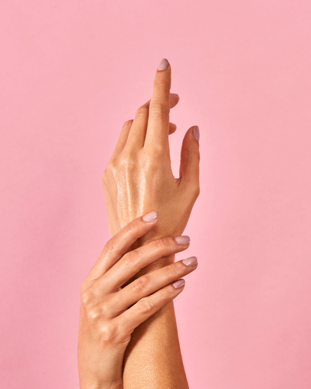 3. Retirar los guantes. Masajear las manos hasta que se absorba el sérum. No necesita aclarar.
