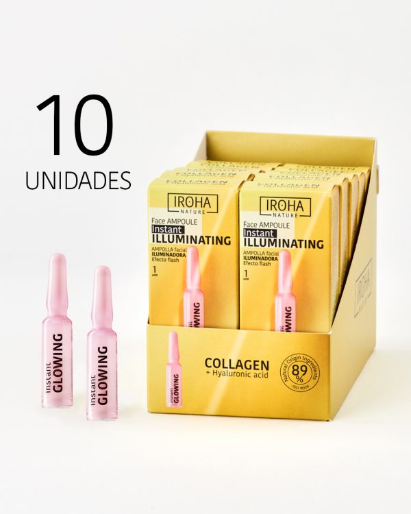 Mejora el aspecto de tu piel y aporta un extra de luminosidad con este pack de 10 Ampollas Flash Iluminadoras, con Colágeno y Ácido Hialurónico.